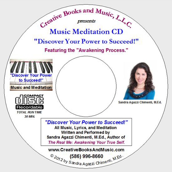 The Real Me: Awakening Your True Self by Sandra A. Chimenti, M.Ed. (that’s Me!) is a powerful, inspirational, and experiential book that takes you from where you are to where you really want to be! The “Discover Your Power to Succeed!” companion Music Meditation CD (piano/vocals) shares my song from my cable show (with the same title) and a blend of meditations from my book.